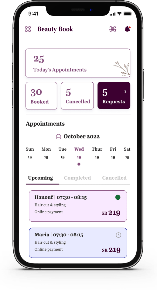 Beauty Salon Appointment App UI